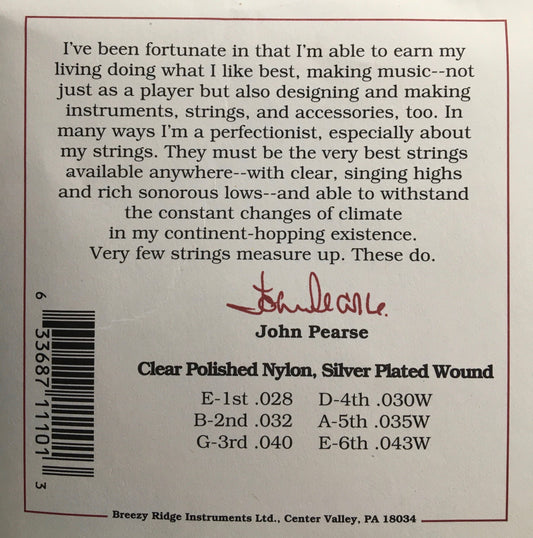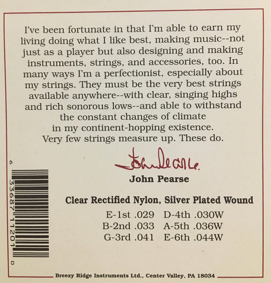 John Pearse 1100 Silver Plated Wound Classical Guitar String Set, 28-43