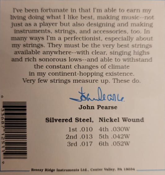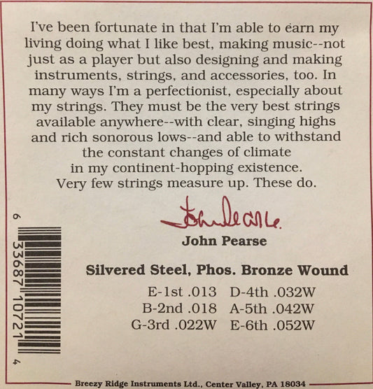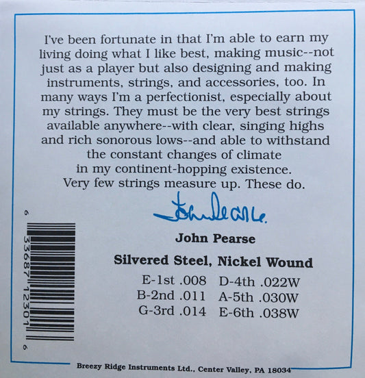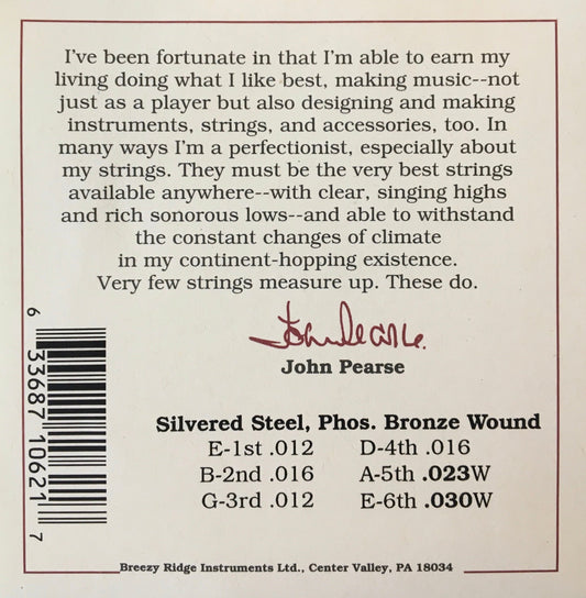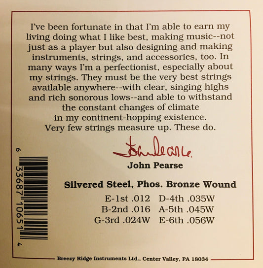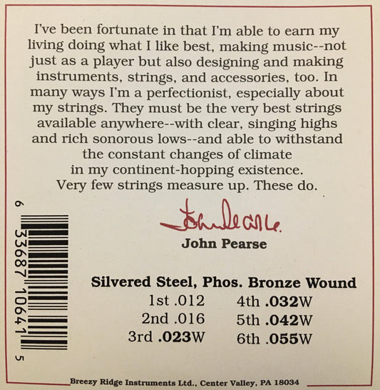 John Pearse 650 Phosphor Bronze Wound Acoustic Guitar String Set, Bluegrass