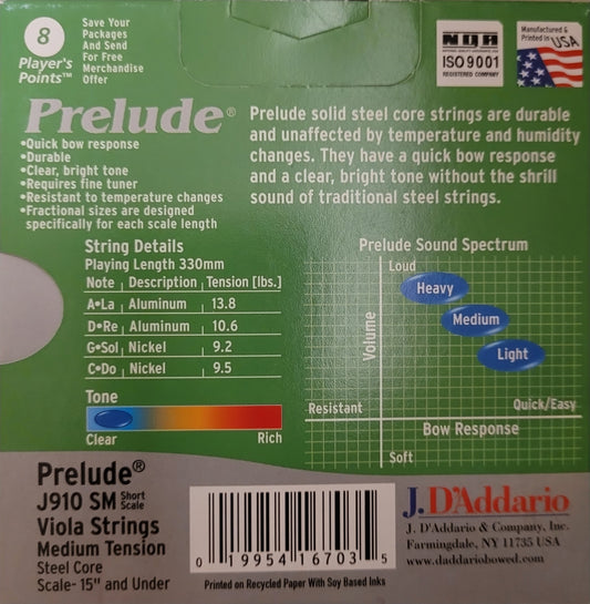 D'Addario Prelude J910-SM Viola String Set - Short