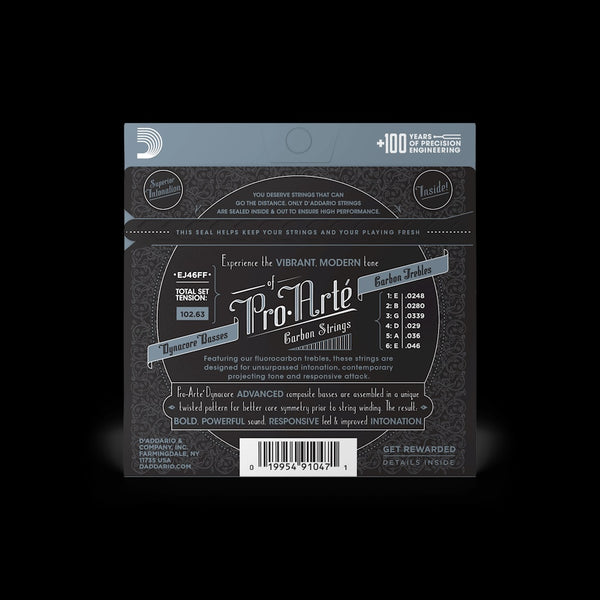 Experience the vibrant, projecting & contemporary tone of D’Addario’s Pro-Arté Carbon strings. Designed to the exacting specifications of our Pro-Arté nylon trebles, our fluorocarbon strings deliver unmatched superior intonation, a responsive attack and modern projecting tone. Paired with the bold and powerful Dynacore basses, Pro-Arté Carbons offer the ideal combination of tension and tone for today’s classical player.