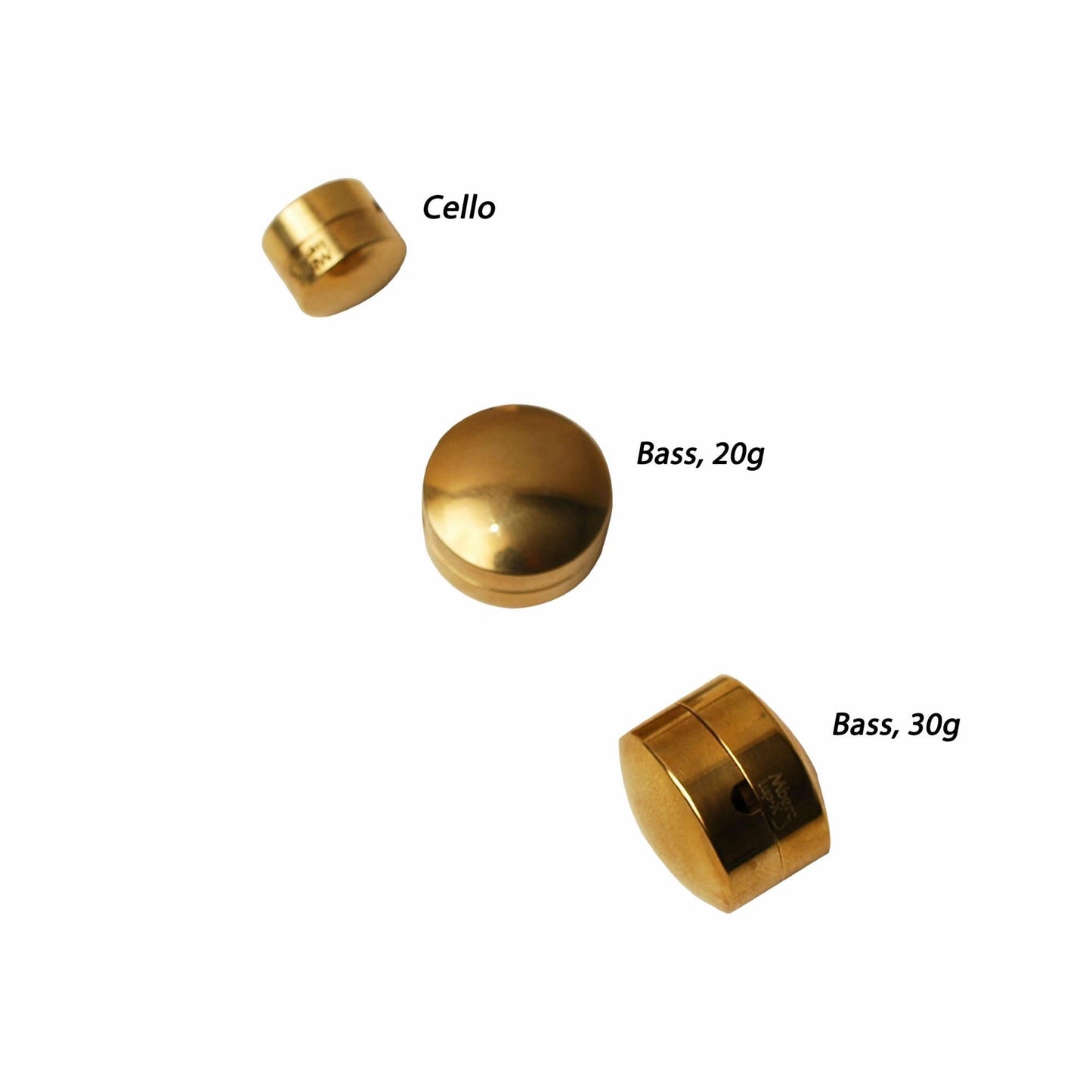 SPECIFICATIONS FOR BASS: material: brass highly polished weight: 20 g & 30 g string sizes: all commonly used A and D and most E and G strings; string diameters 1.3 to 2.8 mm |