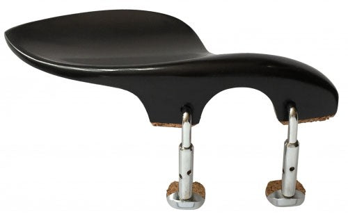 Over-the-tailpiece mounted ebony chinrest with two not connected legs.